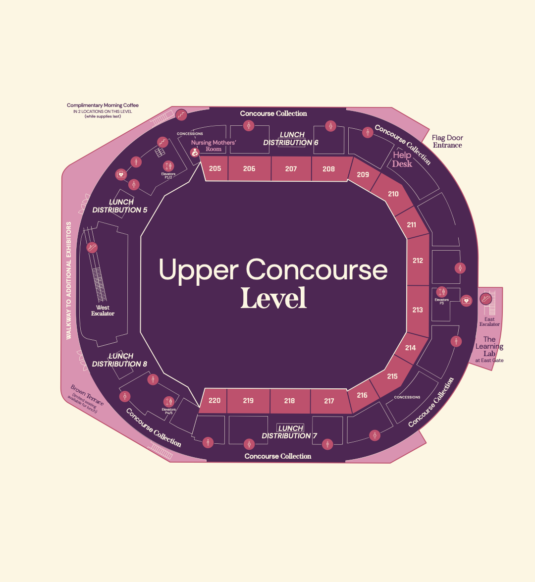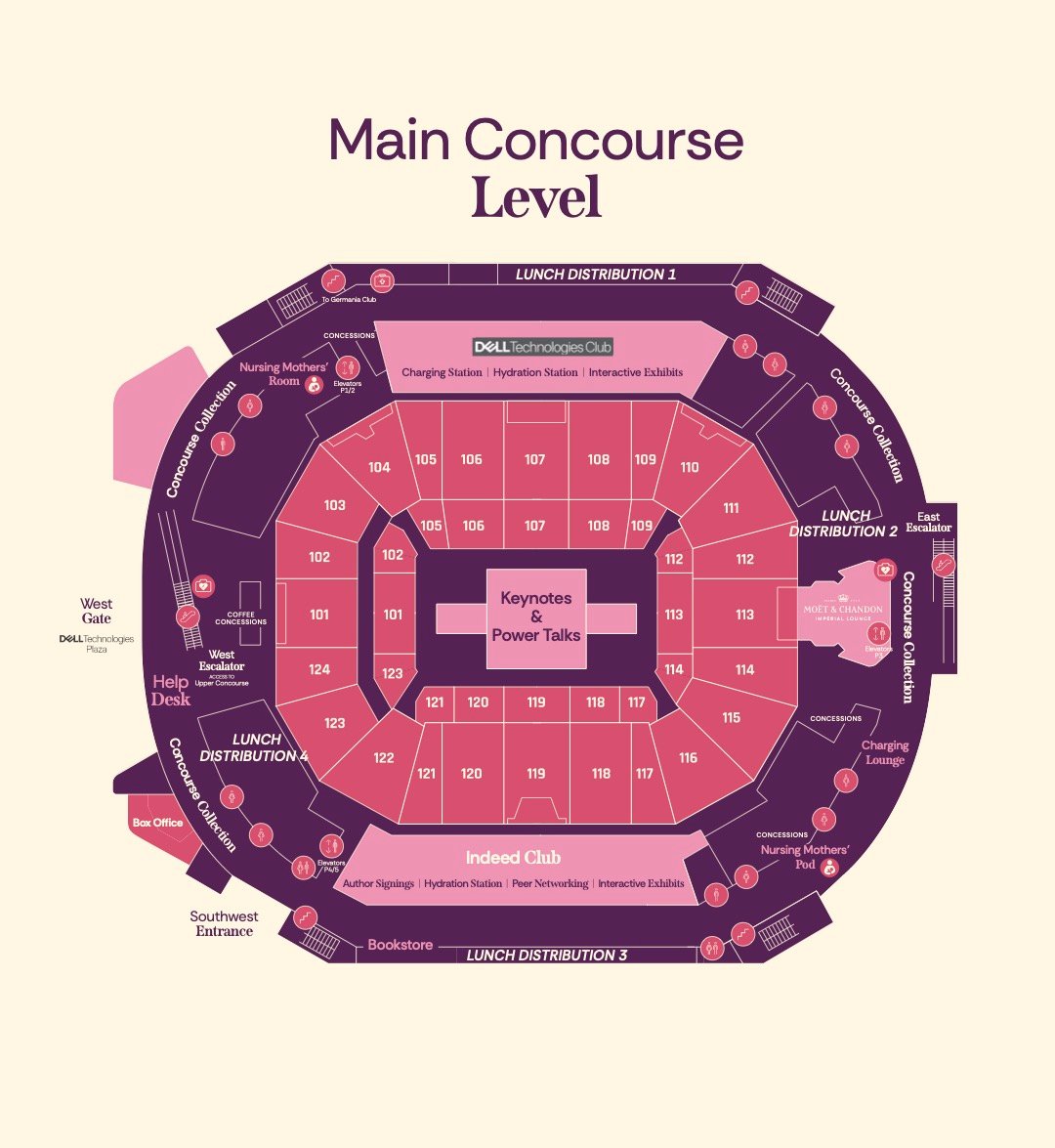 2025 Texas Conference for Women Maps Click on any map to enlarge. Moody Center Exterior Main Concourse Level Upper Concourse Level Loge & Suites Level Lunch Distribution Locations